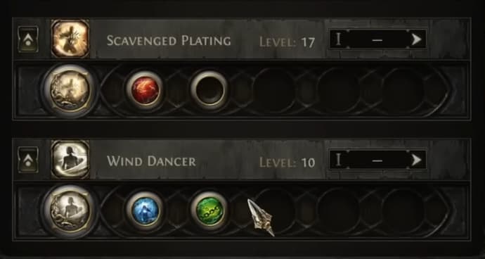 Den siste anbefalte ferdigheten er buff Scavenged Plating, som viser seg å være ekstremt nyttig for å rydde kart. Vi forbedrer den med en enkelt perle, Cannibalism, som gir anstendig helseregenerering når vi dreper fiender.